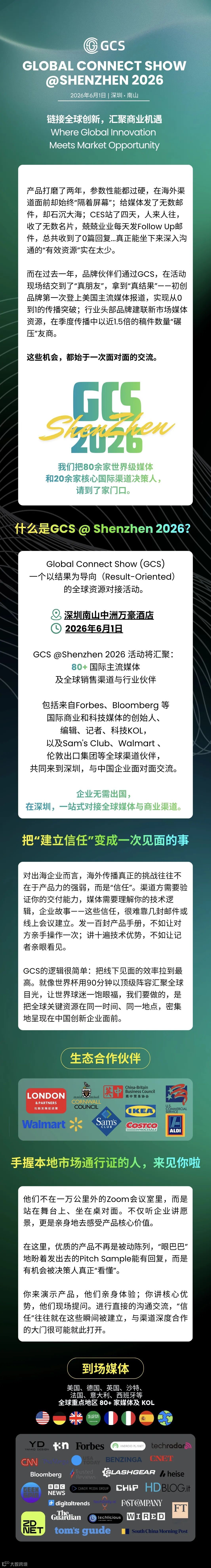 Global Connet Show(GCS)是以结果为导向的全球标杆性商业系列活动品牌,核心使命是促进创新型品牌与海外本地关键资源实现高效联动。