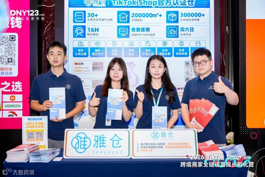 作为本次大会的重要参与方,开云出海与雅仓海外仓立足东南亚卖家核心需求,全方位展示品牌实力,分别从 “合规” 与 “仓储” 两大关键维度,为卖家提供一站式解决方案,实现从本土合规到仓储履约的全链路打通。