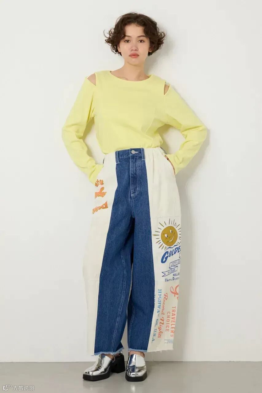 日系小红牌RCWB拼接松紧腰牛仔裤休闲裤 男女同款