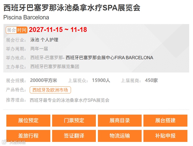 西班牙巴塞罗那泳池桑拿水疗SPA展览会