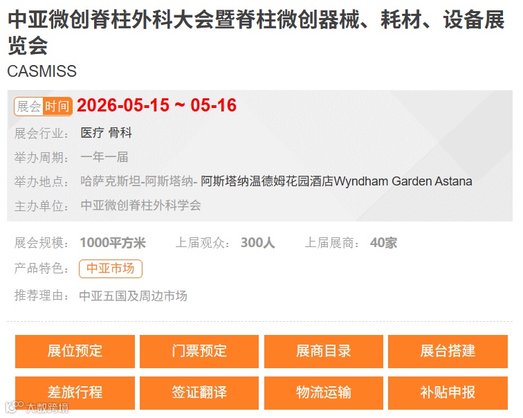 中亚微创脊柱外科大会暨脊柱微创器械、耗材、设备展览会