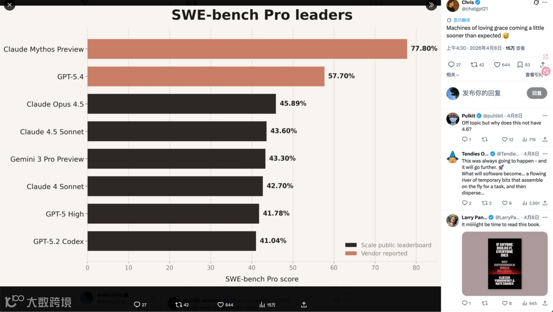 如果说之前的模型是“能帮程序员写代码的助手”,那么 Mythos 已经快进化成“能独立完成项目的资深工程师”了。