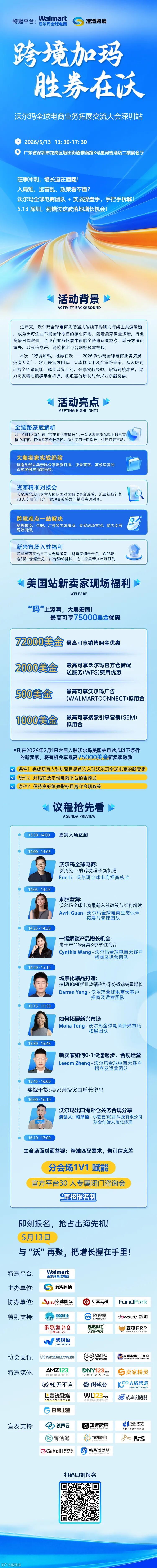 别慌!由港湾跨境主办,沃尔玛全球电商作为特邀平台的「跨境加码・胜券在沃 ——2026 沃尔玛全球电商业务拓展交流大会深圳站」,就是为你量身打造的破局机会!