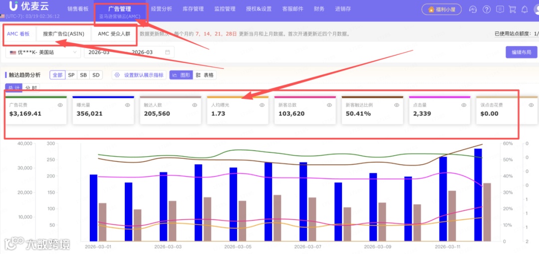 效果监控:在优麦云AMC看板中,实时查看该人群包的曝光、点击、转化和ACOS数据。如果效果理想,逐步提高溢价;如果人群量太小,适当放宽相似度或回溯窗口。