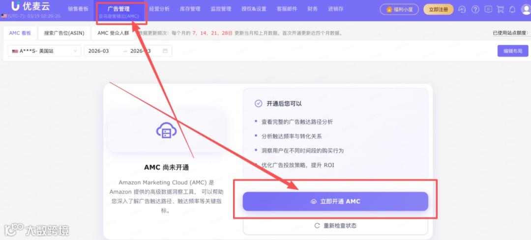 确保你的亚马逊店铺已授权,且满足AMC使用资格(目前免费开放)