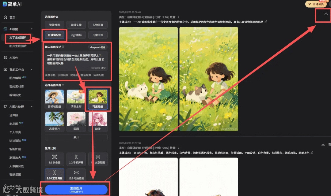 【简单AI】有效解决了这一问题。教师无需绘画基础,通过简洁操作即可生成精准贴合教材的高清插画,覆盖语文古诗意境、数学公式场景及英语情景对话等,显著提升课堂生动性与学生专注度。