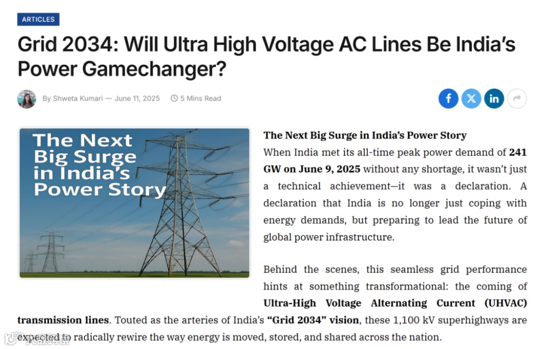 2024年,印度首条1000千伏输电线路投运三个月后因换流阀故障引发大停电。调查显示,本土生产的硅钢片铁损值比中国产品高40%。目前印度最高商业运营电压仍为765千伏,关键部件持续依赖进口。
