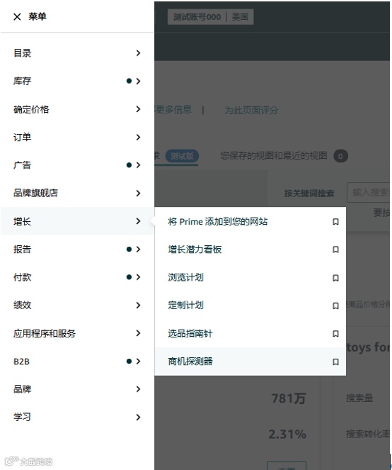 卖家平台 → 增长(Growth) → 商机探测器 → “发现未被满足的需求”标签页