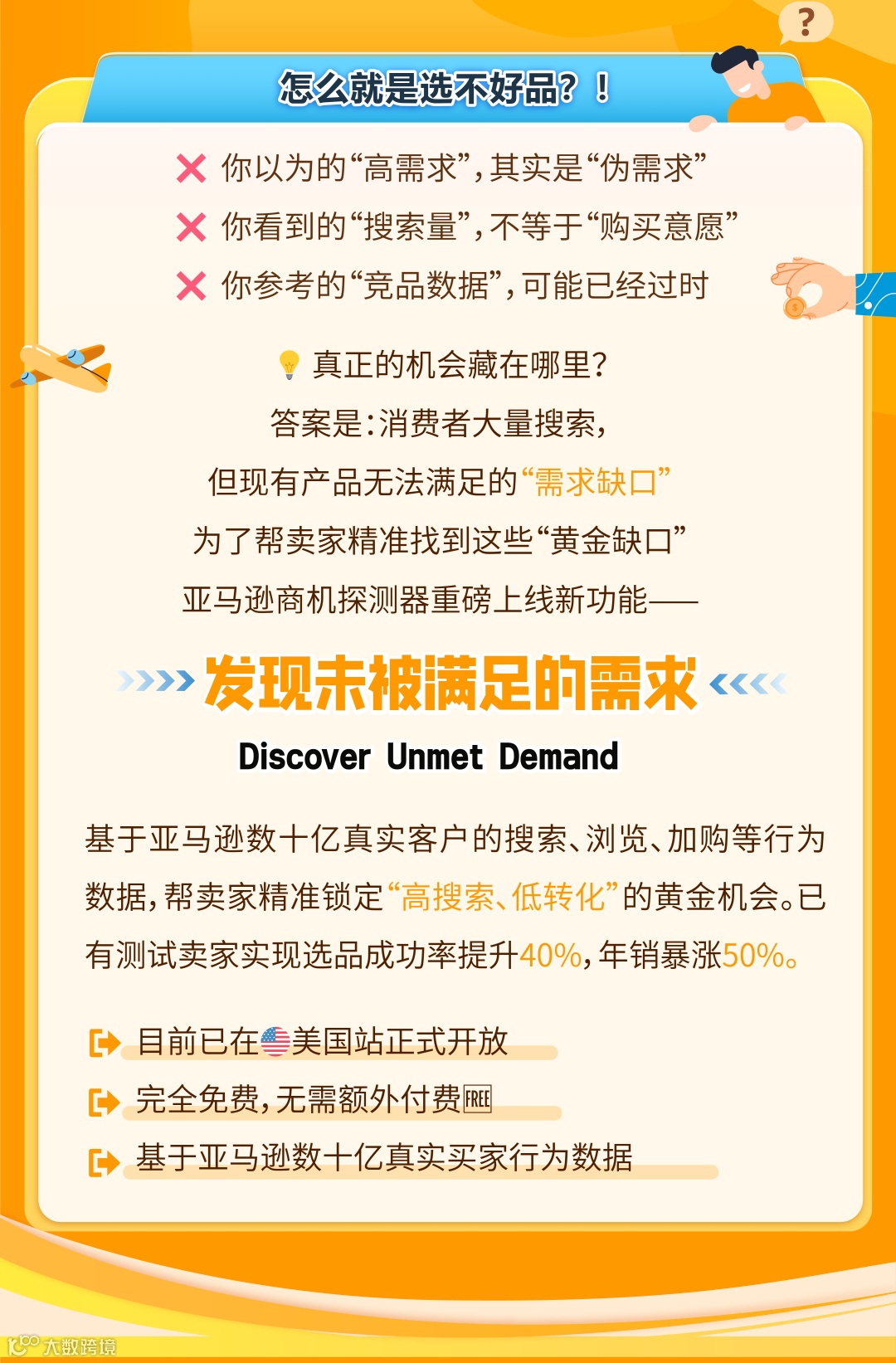 爆款本质源于对客户痛点的精准把握。亚马逊「未被满足的需求」功能将用户搜索行为转化为结构化选品指引,帮助卖家高效捕捉市场红利。