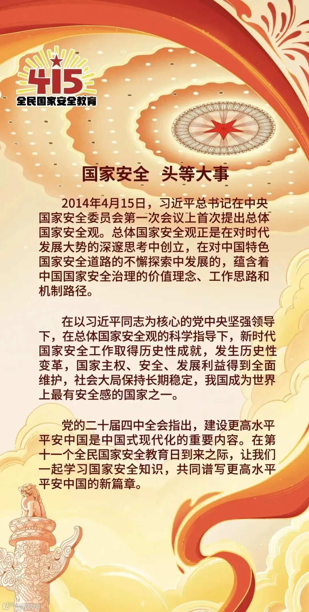 2026年4月15日将迎来第十一个全民国家安全教育日,主题为"统筹发展和安全,护航'十五五'新征程"。