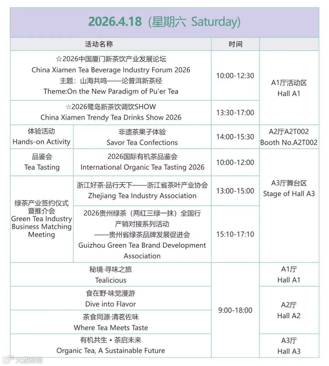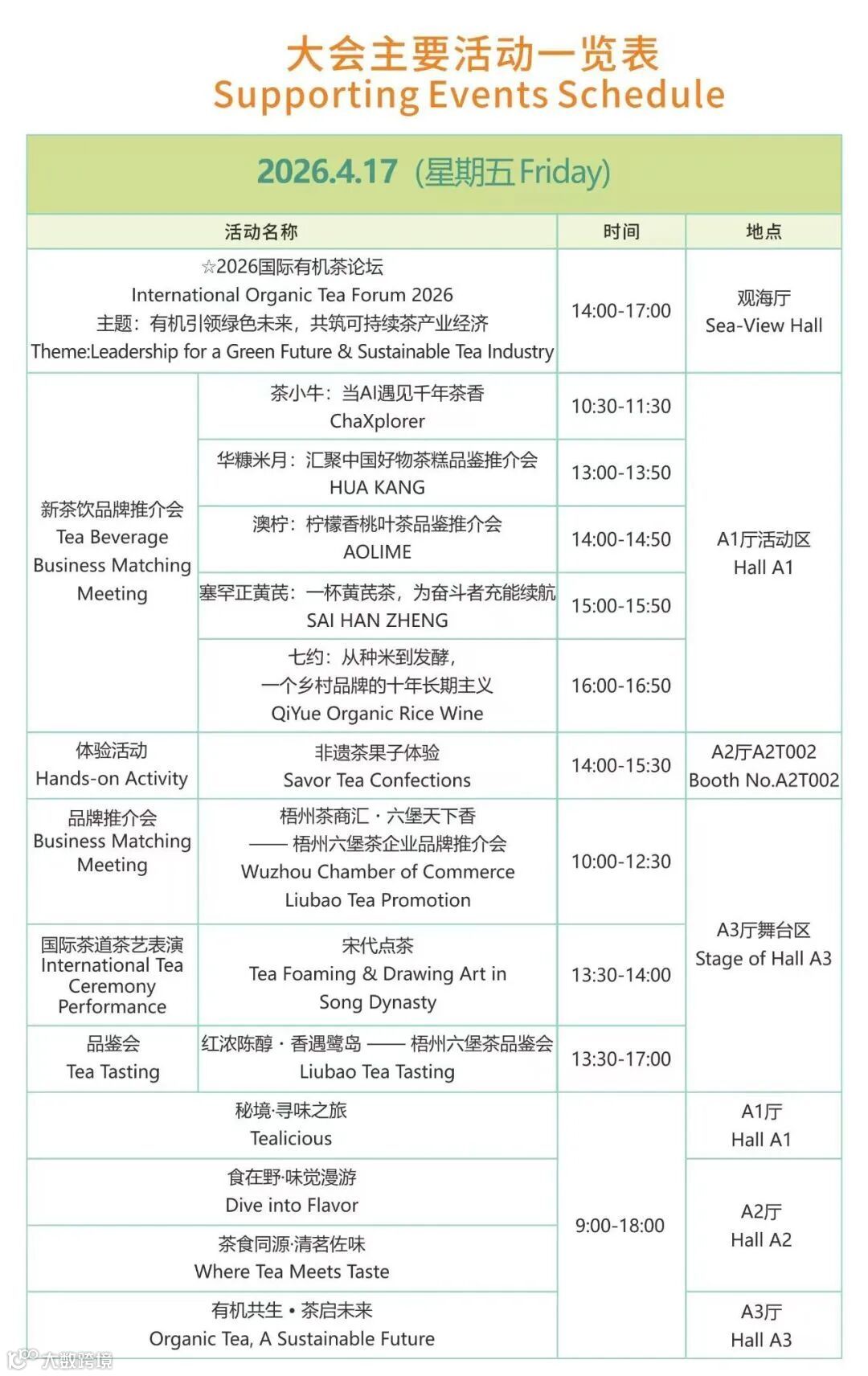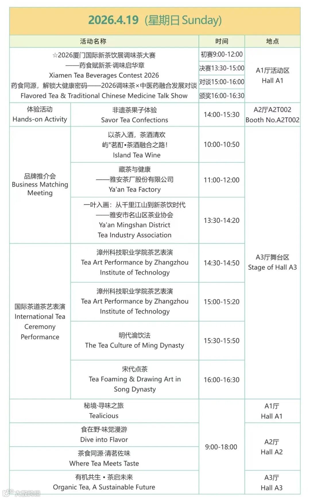 同期举办国际有机茶论坛、新茶饮产业峰会等系列活动,涵盖趋势发布、品鉴赛事等。