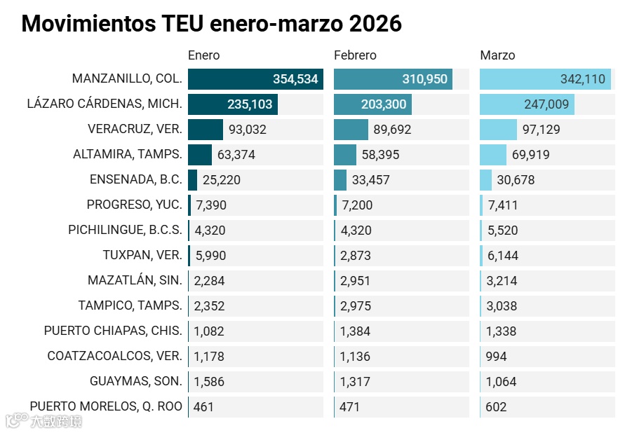 墨西哥海军部最新数据显示,尽管2月整体经济活动有所放缓,但3月港口标准箱运输量同比增长3.1%,呈现逆势增长态势。