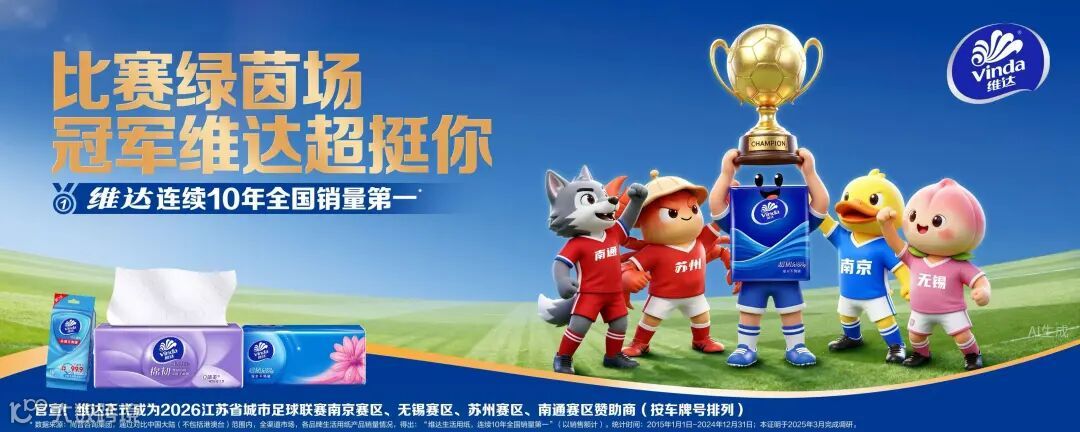 维达将“韧性”升华为品牌精神纽带。2025年签约乒乓球世界冠军孙颖莎为全球代言人,并赞助2026江苏省城市足球联赛南京等四大赛区,通过“宁不服”“锡必胜”等城市口号传递拼搏精神。
