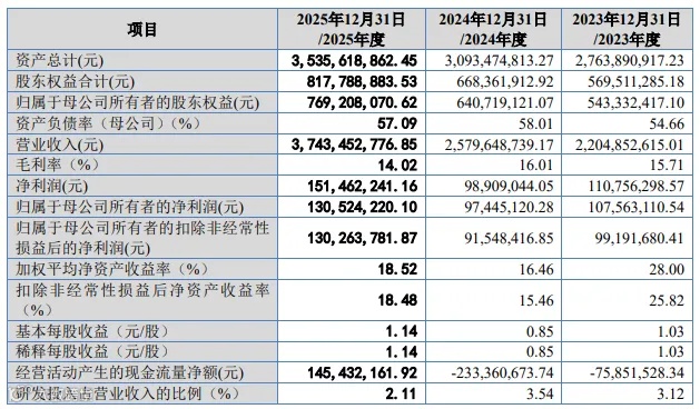 报告期内,公司营业收入分别为22.05亿元、25.80亿元、37.43亿元;扣非归母净利润达9919.17万元、9154.84万元和1.30亿元。