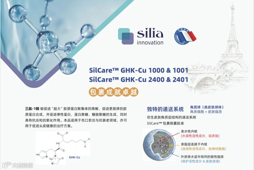 SilCare™ GHK-Cu 1000 & 1001:采用角质层仿生包裹技术,实现活性成分高效渗透,突破传统肽类易失活瓶颈。