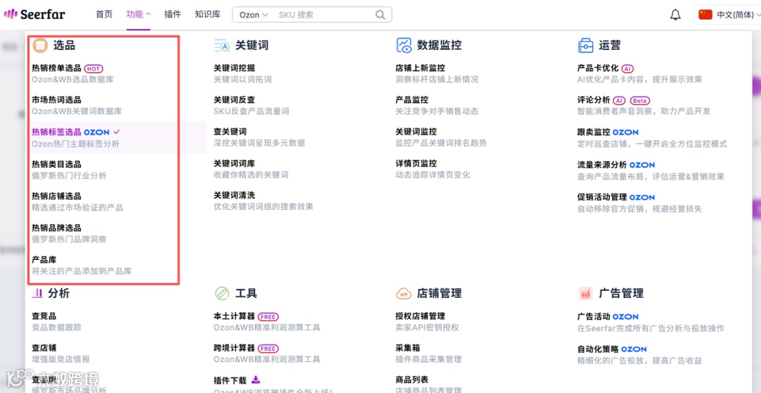 - 实时追踪Ozon热搜榜单与蓝海类目