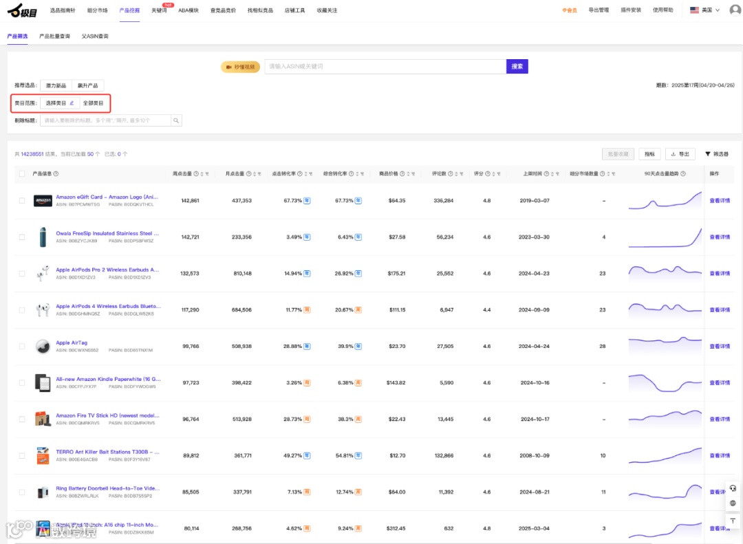 该方法通过极目数据产品挖掘模块实现多流量类型产品的精准筛选,提升选品效率。