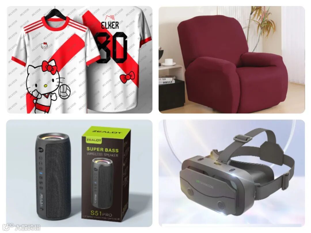 推荐商品:主题家居服、懒人沙发、便携音箱、零食托盘、VR设备