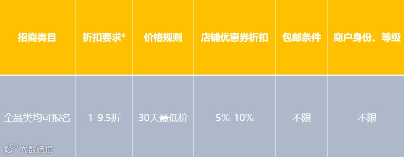 • 商品要求:符合世界杯主题,提供竞争力折扣;优化商品Listing融入赛事元素;重点加权类目:运动户外服装/鞋/包、玩具礼品、珠宝配饰、消费电子、手机及配件、家居花园、宠物用品。
