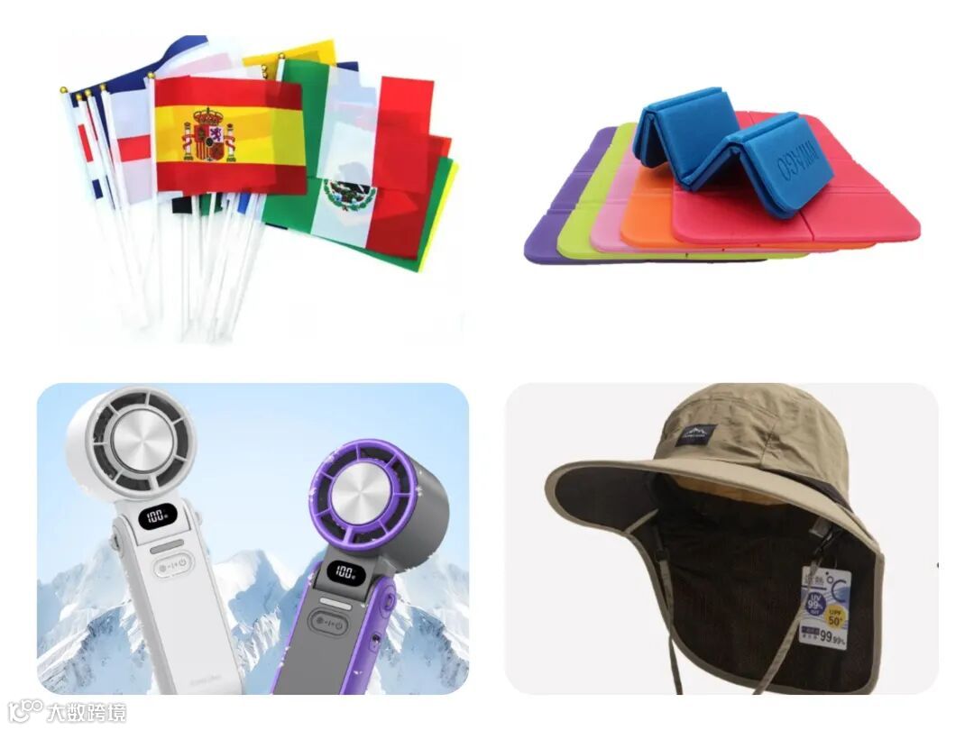 推荐商品:加油棒、手摇旗、折叠坐垫、便携风扇、防晒帽、雨衣