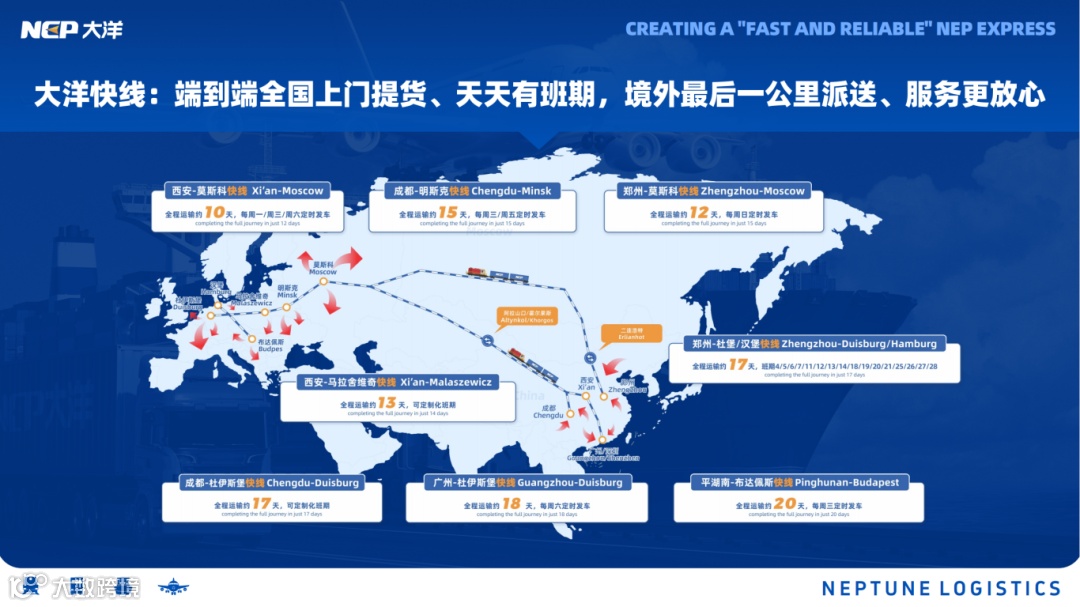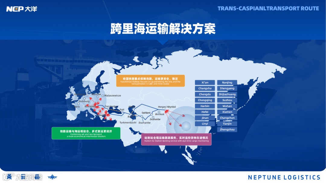 大洋物流依托跨欧亚多通道网络布局,整合铁路干线、跨里海通道及中亚路径资源,强化多式联运协同,为车企提供高确定性运输保障。
