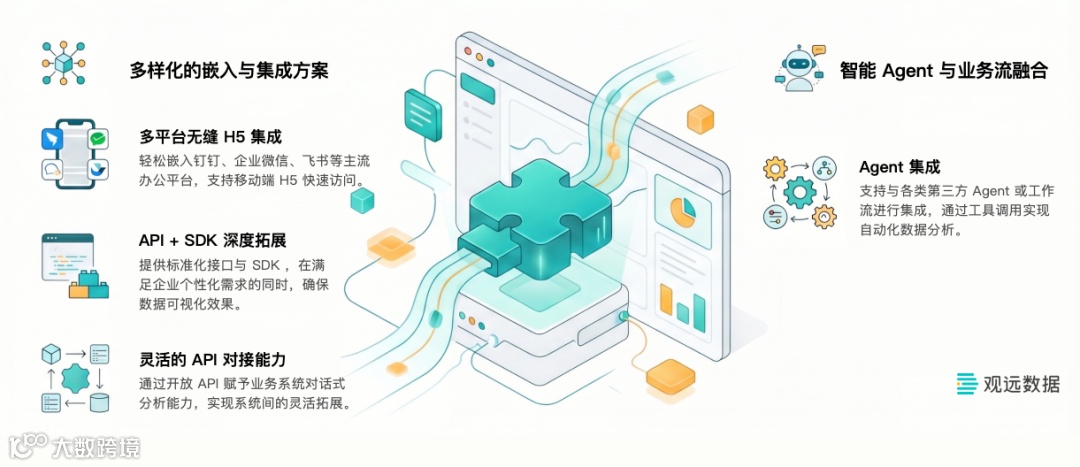 在此背景下,嵌入式集成成为趋势——AI能力从独立入口延伸至业务系统与工作流。观远ChatBI将数据查询无缝整合到企业现有工作流中,使查询成为业务动作的一部分,效率即时提升。