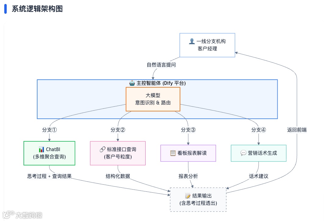 系统智能识别用户意图:模糊查询转向ChatBI分支,精准点查调用标准接口,兼顾灵活性与准确性。