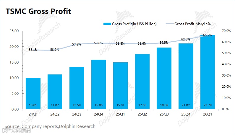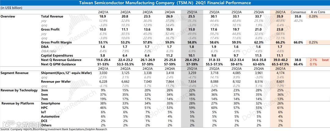 台积电发布2026年第一季度财报(截至2026年3月),核心指标表现强劲: