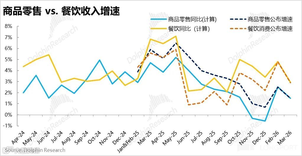 线上服务型消费表现稳健,3月隐含增速近12%,反映酒旅、文娱等领域保持韧性。