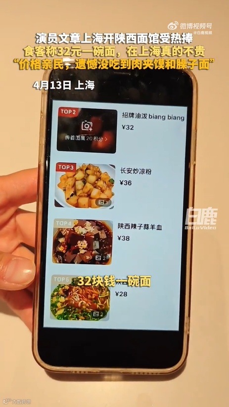 演员文章在上海开设的陕西风味面馆近日引发网络热议。4月13日,“文章上海面馆价格”登上微博热搜,公众聚焦于定价合理性及明星创业动机。