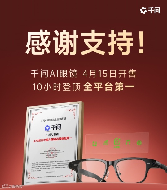 当行业质疑AI眼镜仅为概念时,阿里已通过多年技术沉淀交出答卷。4月15日,千问AI眼镜S1现货开售,开售仅10小时即登顶天猫、京东、抖音等平台销量榜首,延续系列热销势头。