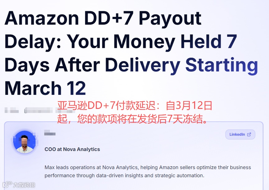 作为跨境电商领导者,亚马逊政策变动直接影响卖家资金链。今年3月实施的“DD+7”资金预留新规已引发行业普遍压力。