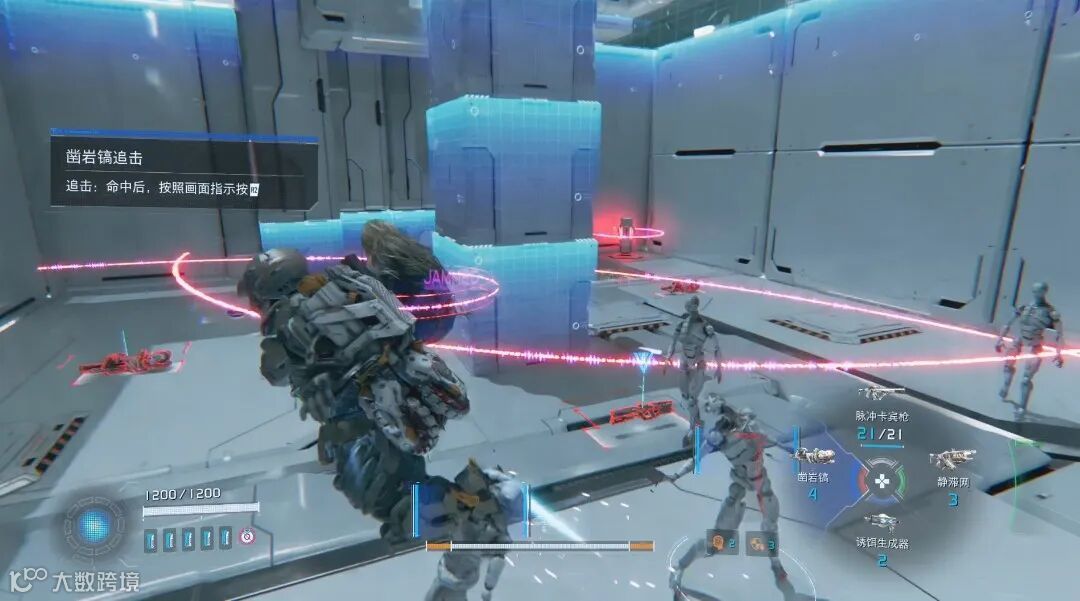 《识质存在》本身是TPS游戏,但如果没有黛安娜的黑客能力,射击这个动作在游戏里基本就是没意义——必须先靠黛安娜解除敌人的防护,然后开枪才有效果。