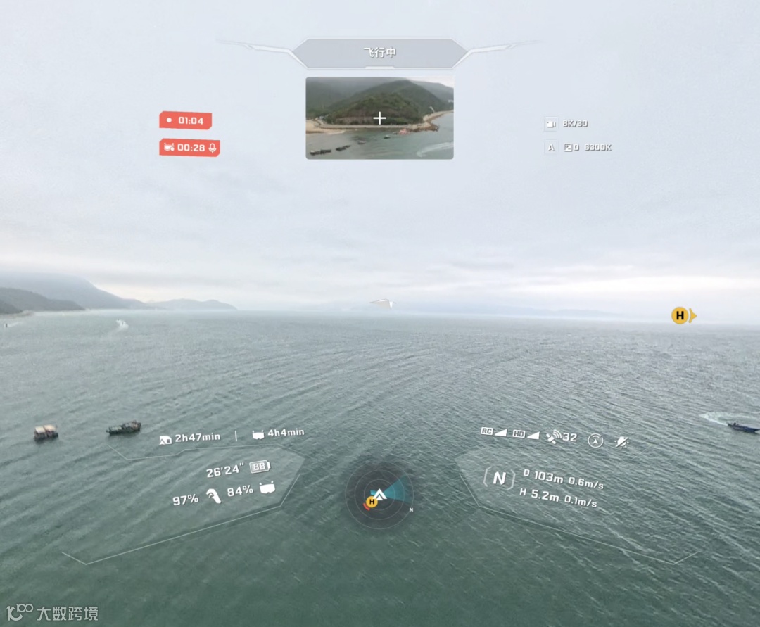 注意:上面的图片是影翎 Vision 飞行眼镜的录屏截图,画质受图传信号强度影响有所损失,无人机实际拍摄的画质不受影响。