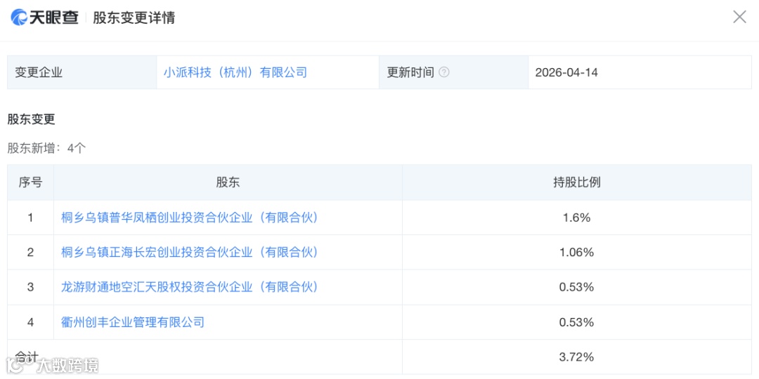 股东方面,新增桐乡乌镇普华凤栖创业投资合伙企业(有限合伙)、桐乡乌镇正海长宏创业投资合伙企业(有限合伙)、龙游财通地空汇天股权投资合伙企业(有限合伙)和衢州创丰企业管理有限公司。