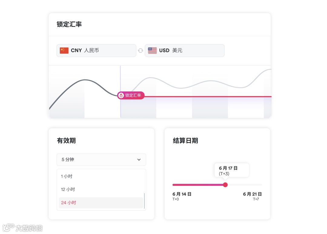 预约锁汇:最长提前 90 天锁定当前汇率,在未来换汇。不用保证金,签单那一刻就把利润锁死,不管市场怎么波动,你赚的钱不变
