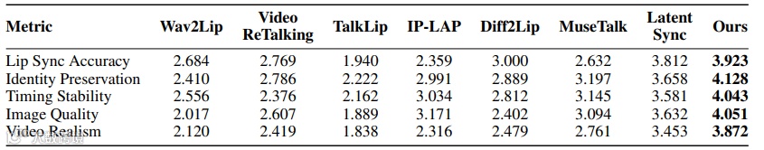 用户研究结果比较了各种基于音频的唇形同步方法。
