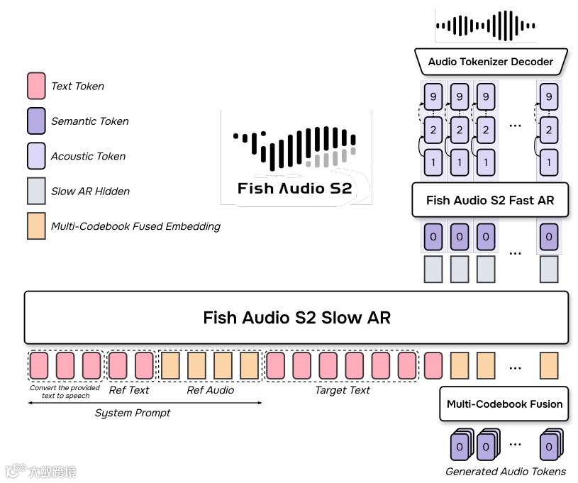 一句话总结:输入文本+自然语言情感指令 → 输出带细粒度韵律/情感控制的逼真语音,Fish Audio S2 用双自回归架构+强化学习对齐,在开源模型中首次实现生产级流式推理(首音频<100ms)。