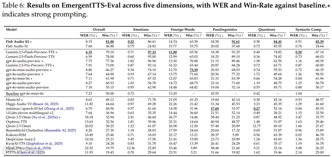 能不能让开源TTS既「会演戏」又「跑得快」? 今天给大家介绍的由Fish Audio开源的Fish Audio S2是目前综合能力最强的开源语音合成系统:支持自然语言指令控制情感韵律、原生多说话人/多轮对话、生产级流式推理,在多项基准测试中超越闭源方案。目前已经冲到了HuggingFace的热门榜单Top1!