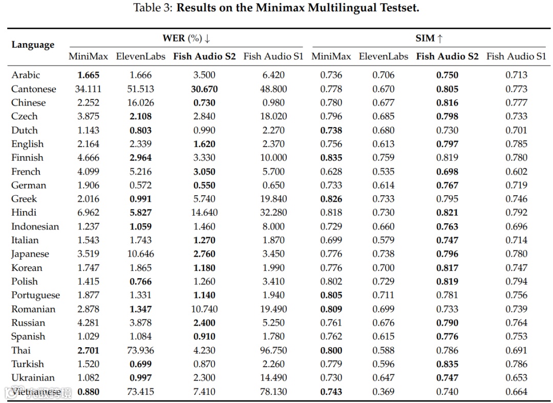 Fish Audio S2 支持高质量的多语言文本转语音,无需音素或特定语言的预处理。包括:英语、中文、日语、韩语、阿拉伯语、德语、法语...