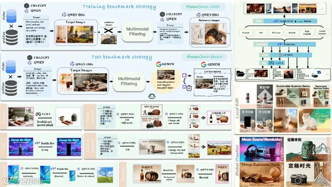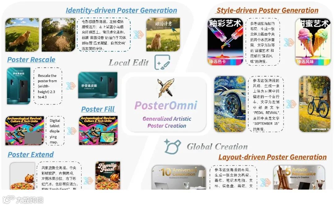 在图像转海报的创意领域,如何高效融合局部精细编辑与全局概念设计,一直是创作者面临的挑战。PosterOmni这一创新框架的出现,正引领我们进入一个全新的艺术海报创作时代!通过任务蒸馏与统一奖励反馈机制,PosterOmni实现了从图像到海报的高效转换,无论是局部调整还是全局布局,都能轻松驾驭,让创意触手可及。