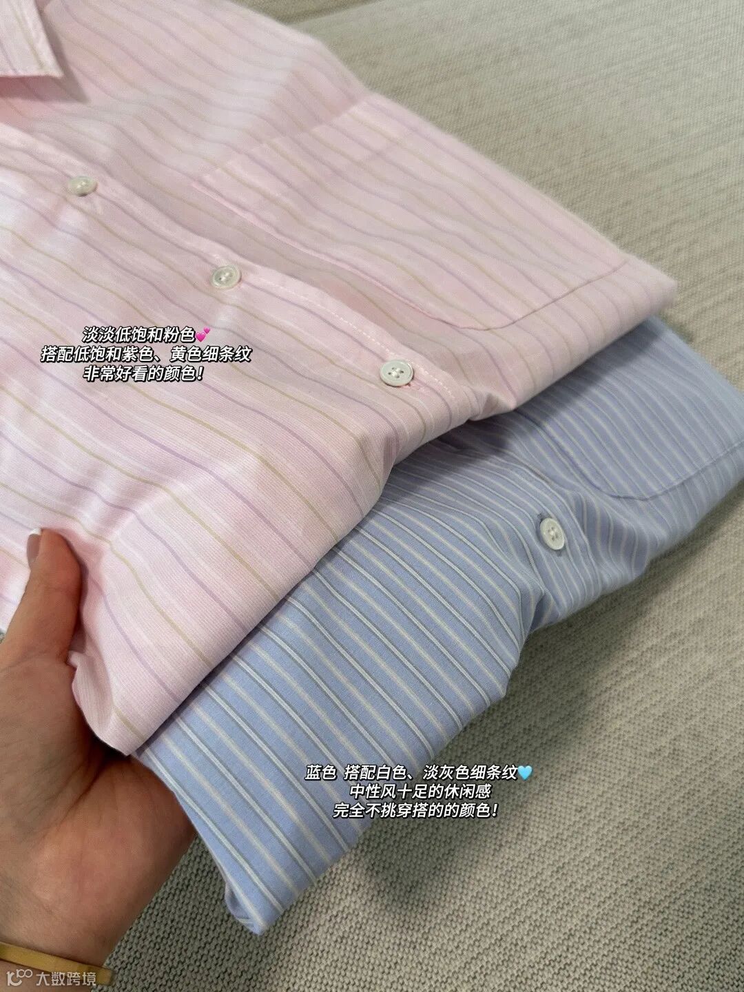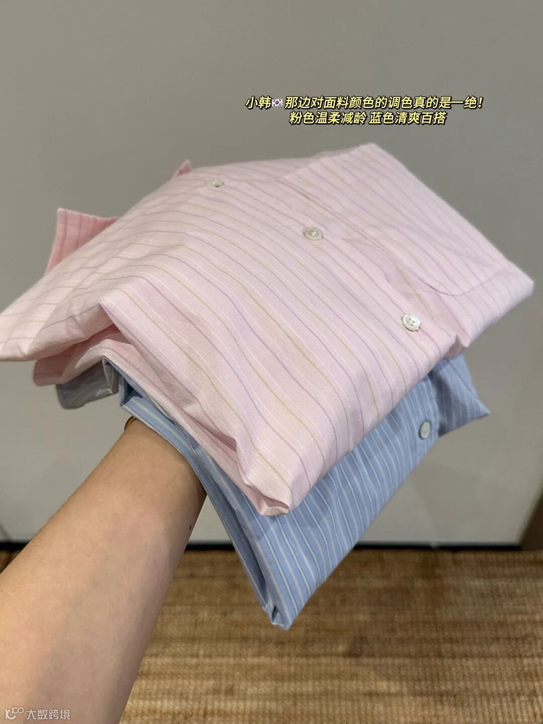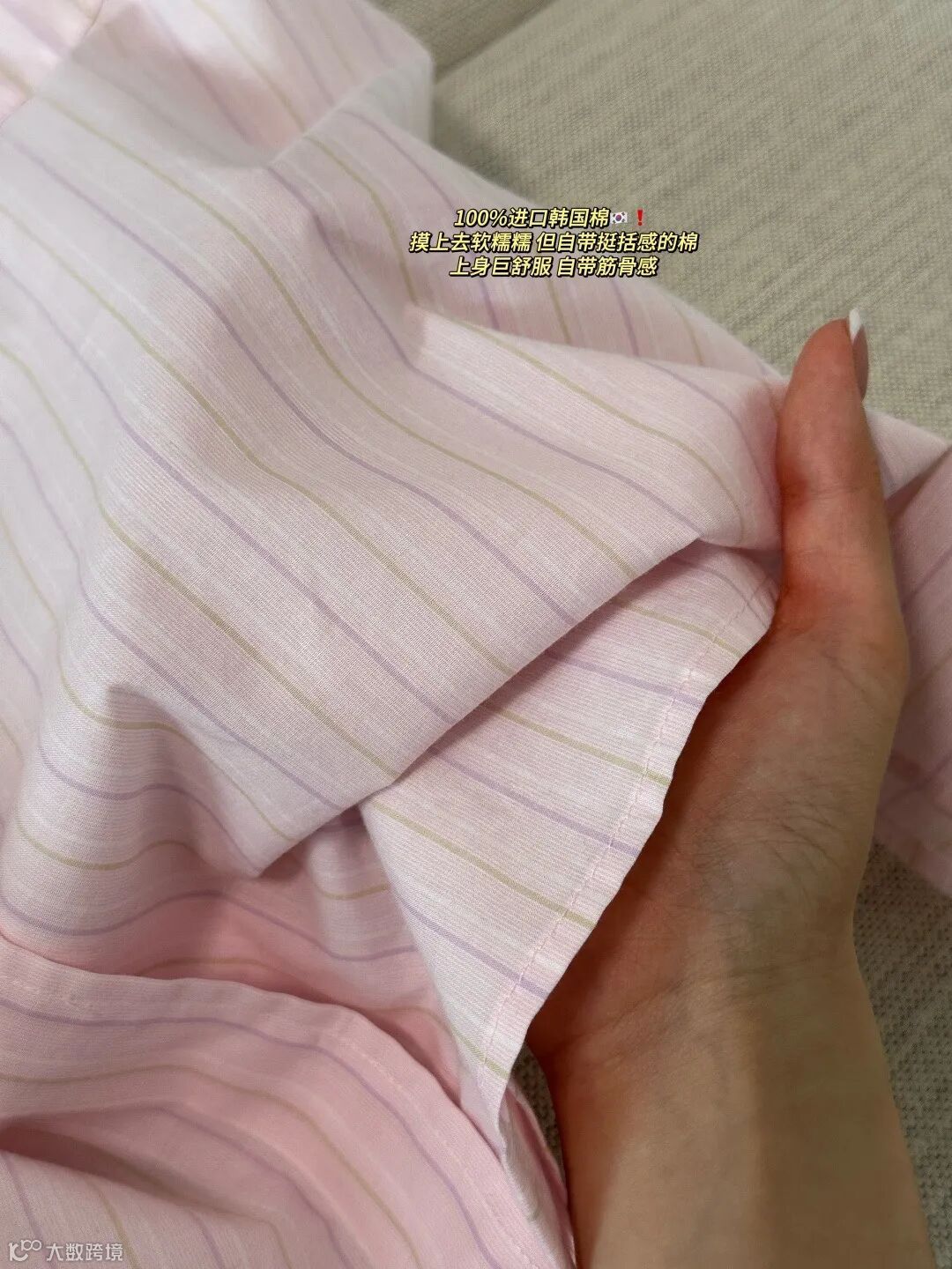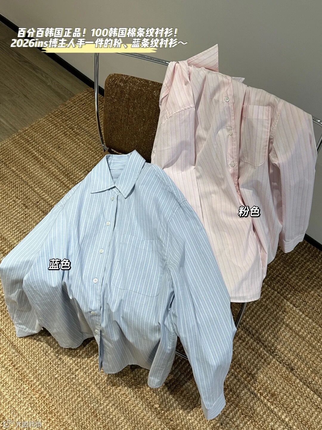 韩国设计师牌!100韩国棉条纹衬衫!2026ins博主人手一件的粉、蓝条纹衬衫~轻松拿捏韩女的氛围感穿搭!