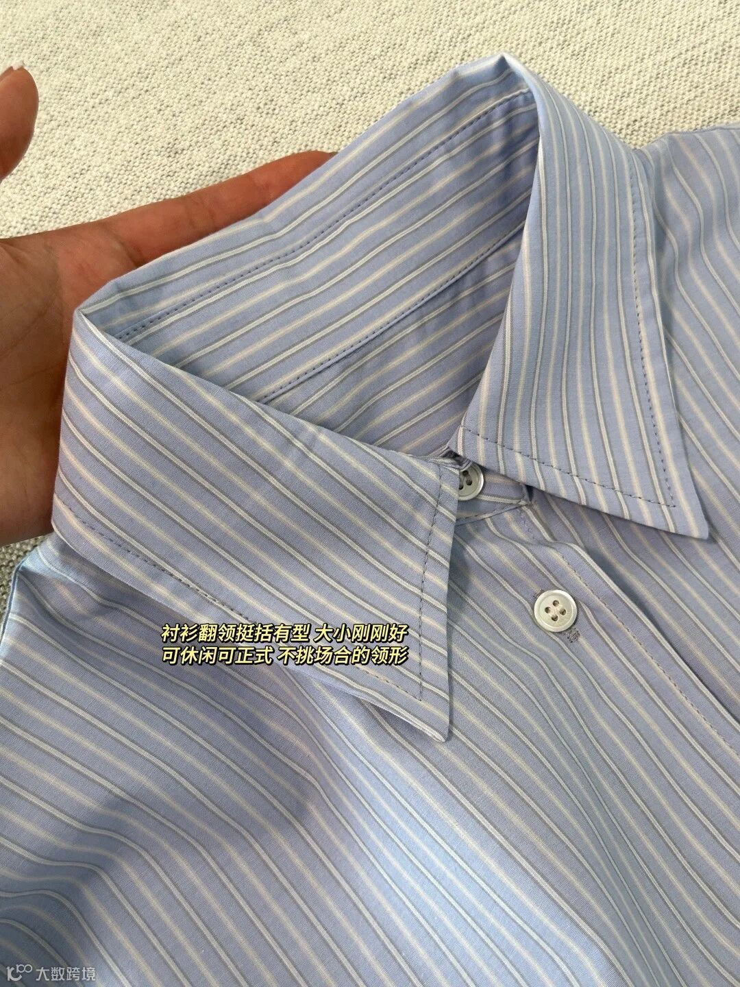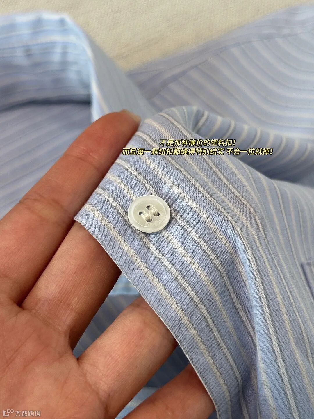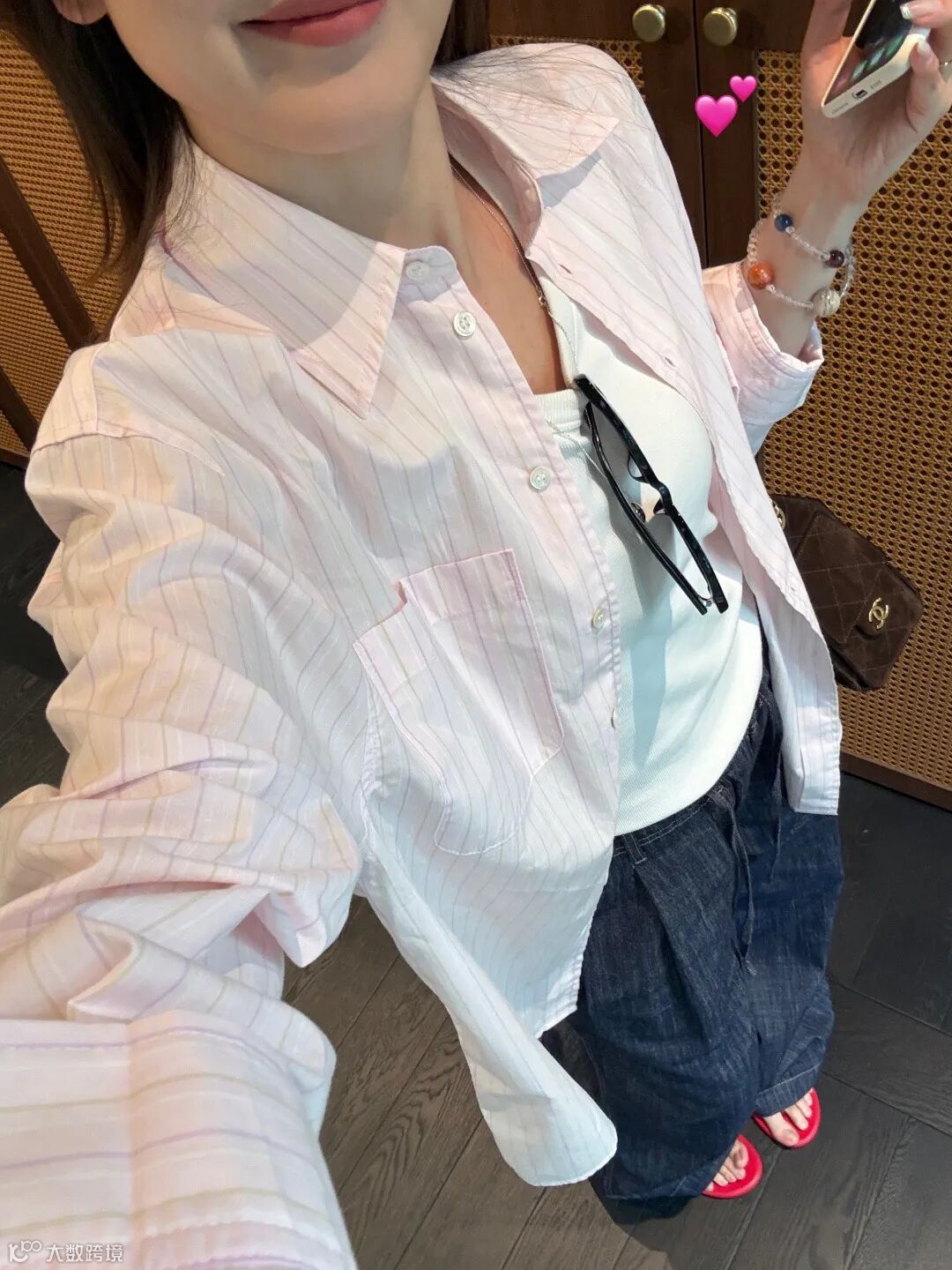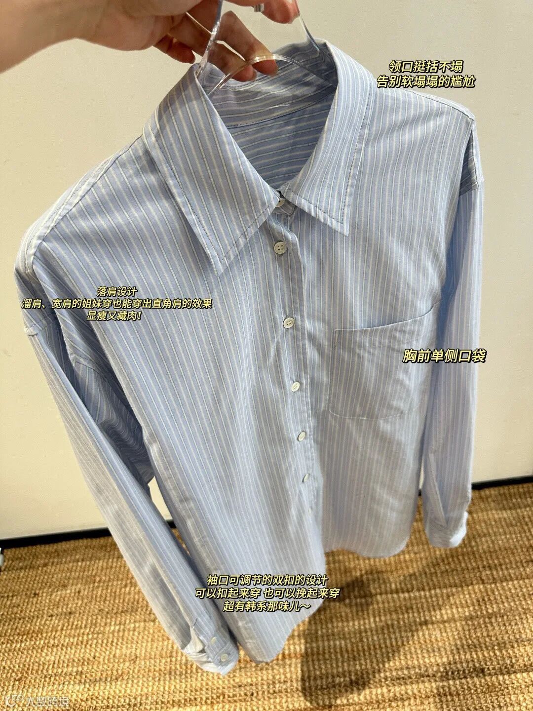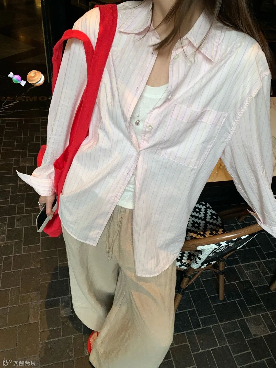 韩国设计师牌!100韩国棉条纹衬衫!2026ins博主人手一件的粉、蓝条纹衬衫~轻松拿捏韩女的氛围感穿搭!