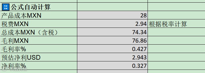 PS:此处头程/税费/海外仓履约费等数据不完全准确,只做参考。