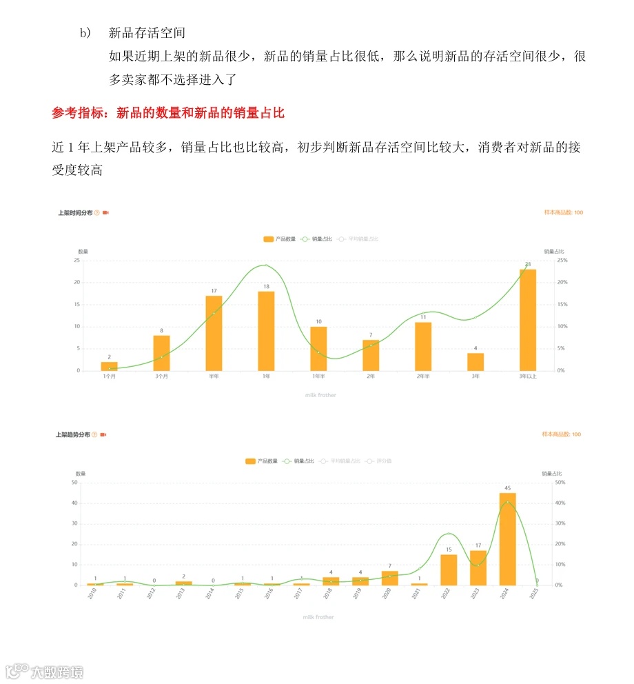 5.新品存活空间:近期新上的竞品数量多吗,他们的销量怎么样。如果新品数量少,销量占比也很少,说明市场竞争比较激烈,新品存活空间小,消费者对新品的接受度不高或者新品根本没办法展现到消费者面前