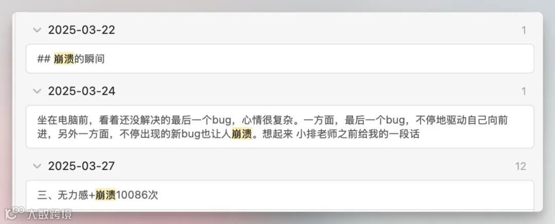 这些看似零散的记录,经AI整合后可串联成体系。例如15K公众号长文的产出,便得益于过往碎片化思考。**无效记录实为最大价值**——它们忠实留存决策原始状态,避免记忆偏差。