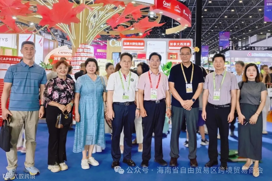 2026年4月15日,海南省自由贸易区跨境贸易商会(简称"跨贸会")会长蔡松城率执行会长胡裕松、王世孟等团队赴第六届中国国际消费品博览会开展专题走访。本届消博会作为亚太地区规模最大的消费精品展,是链接国内外市场的重要窗口。此次行动聚焦"服务会员、链接产业、赋能发展"目标,实地考察会员企业参展成效与发展需求。