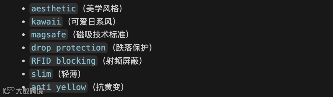 "MagSafe" 逻辑:用户说"magnetic wallets",AI 替换为 iPhone 生态认证术语"MagSafe"。