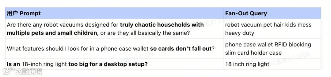 商品卡数据并非来自 AI 训练库,而是通过查询扇出实时抓取。这意味着关键词生成质量直接决定商品曝光机会。