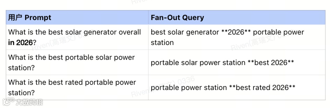 该过程称为Query Fan-Out(查询扇出),由 Google 搜索负责人 Elizabeth Reid 在 2025 年 I/O 大会正式命名。尽管 ChatGPT 未公开术语,其底层机制与之完全一致。